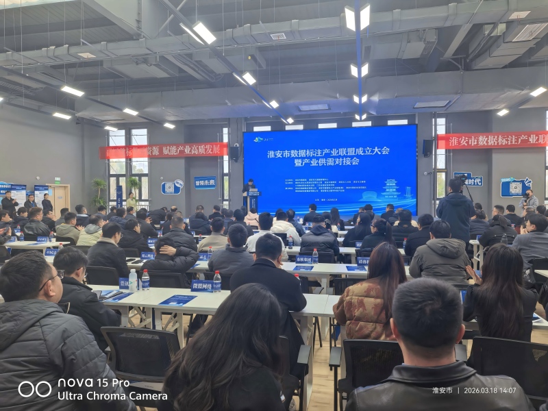 3月18日,淮安市数据标注产业联盟成立大会暨产业供需对接会在市生态文化旅游区国发智优沃数字科技产业园举办,本次活动以“融通数标供需资源 赋能产业高质发展”为主题,汇聚政产学研多方代表,共同开启淮安数据标注产业协同发展新征程。